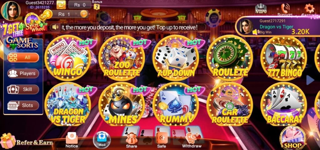With its secure wallet, daily bonus system, referral rewards, and VIP features, this platform gives a complete earning experience. Players can start with minimal investment and still access premium games and payouts.