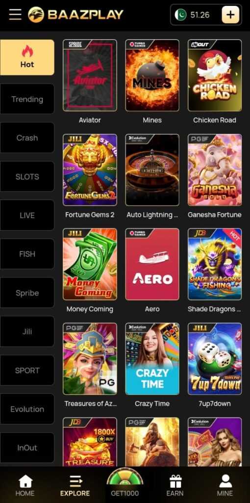 The Baaz Play Game APK is an Android-based mobile application designed for Pakistani users. It combines the thrill of a casino with the practicality of an earning app. Members can explore different categories, try their skills, and win rewards that can be withdrawn instantly.