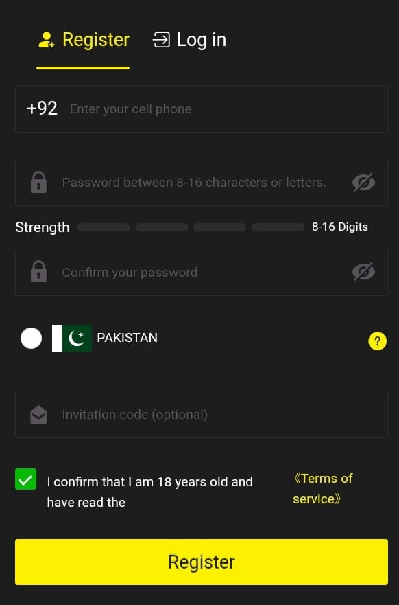 Open the app and sign up using your mobile number. Create a password and confirm your details. Registration takes less than a minute.