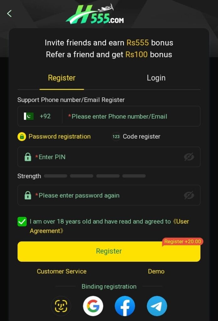 H555 Game register and withdraw process is smooth. Users can use JazzCash, Easypaisa, and bank transfers for instant payments.
