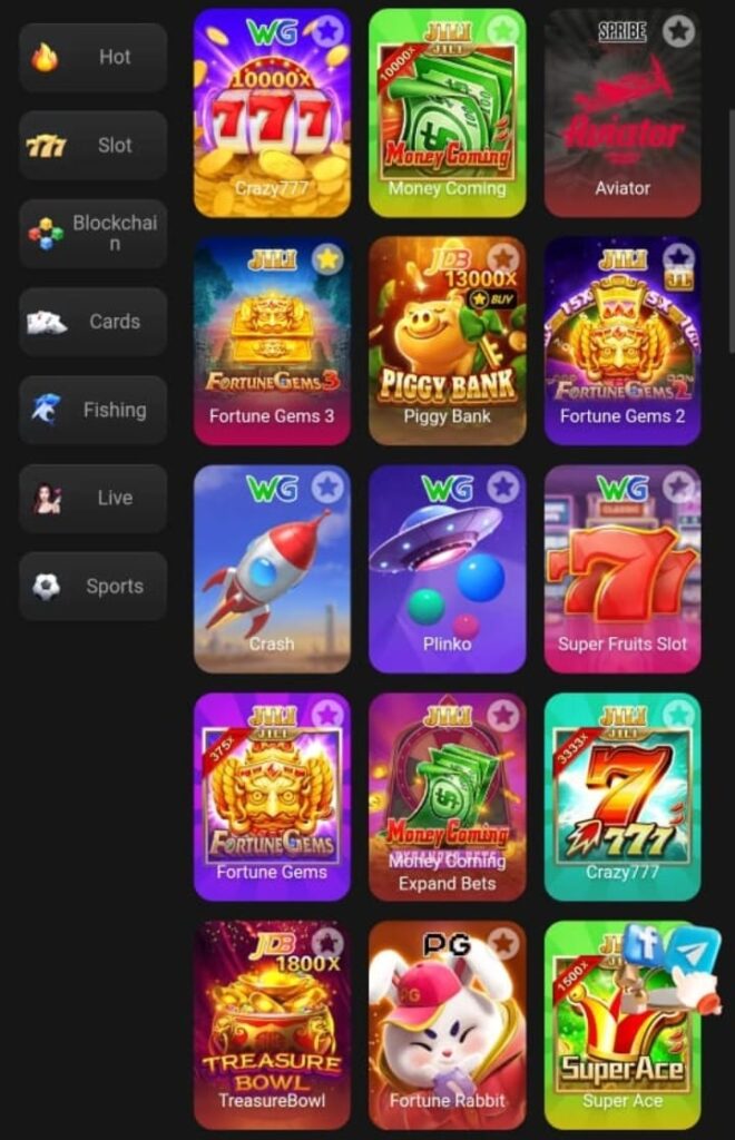 The app includes a wide range of casino-style games such as slot machines, poker, baccarat, roulette, and other popular betting games. Players can switch between categories easily and explore different gaming styles.