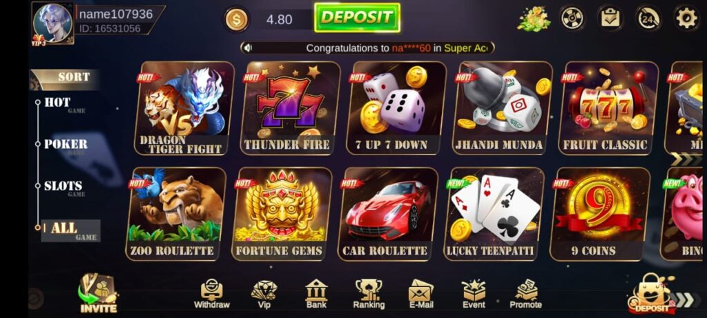 - Multiple Casino Games: From classic slot machines to casino games such as Dragon Tiger and Jhandi Munda.