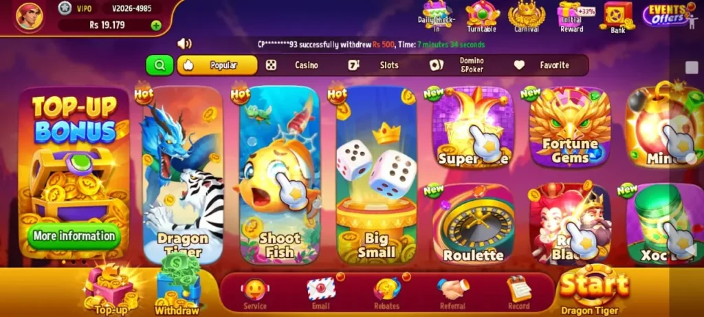 The app offers various bonuses, such as sign-up rewards, daily check-ins, and spin-to-win chances. This means players can start earning without making any initial deposit, making it beginner-friendly for everyone.